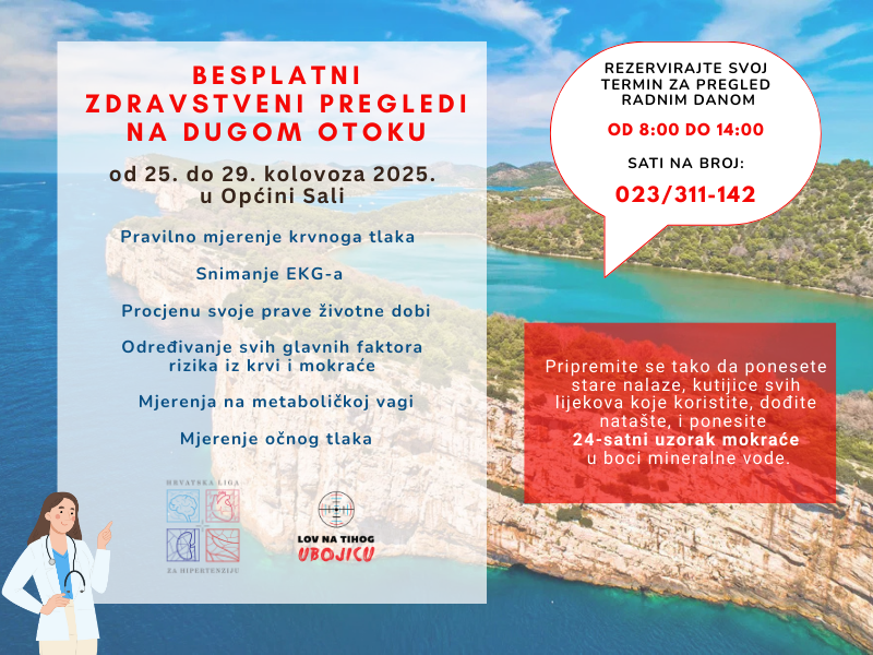 Javnozdravstvena akcija održat će se od 25. do 29. kolovoza 2025. u prostorima Općine Sali (Sali II 74/A).