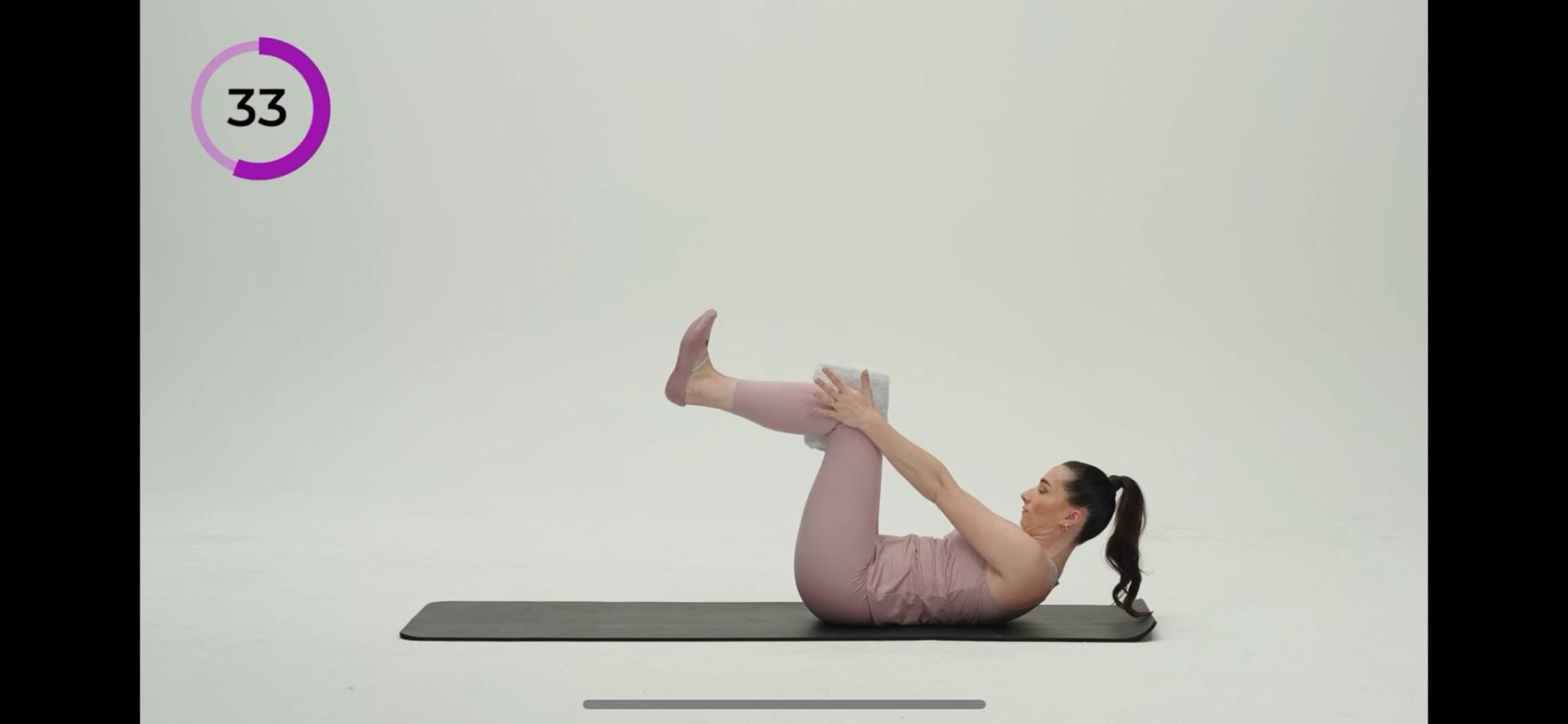 Vježba za kukove: Na leđima, noge po 90 stupnjeva – podignite glavu + pritisnite koljena rukama prema unutra - 45 sekundi